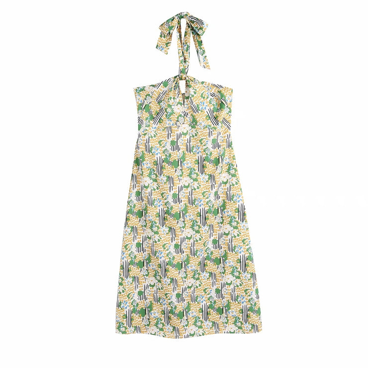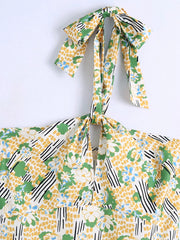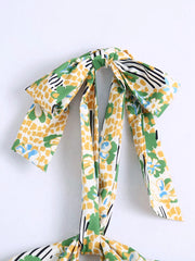 • Cute floral print bow tie halter strap dress