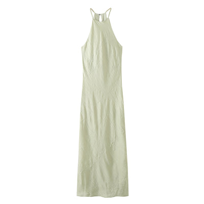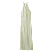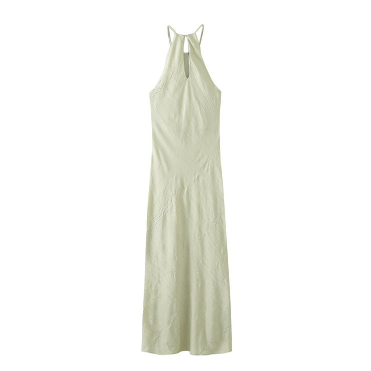 light green mint halter long maxi dress soft pleat casual beach wear holiday christmas special occasion dress sexy sleeveless mint green fashion style zara women's clothing crumpled simple basic cut