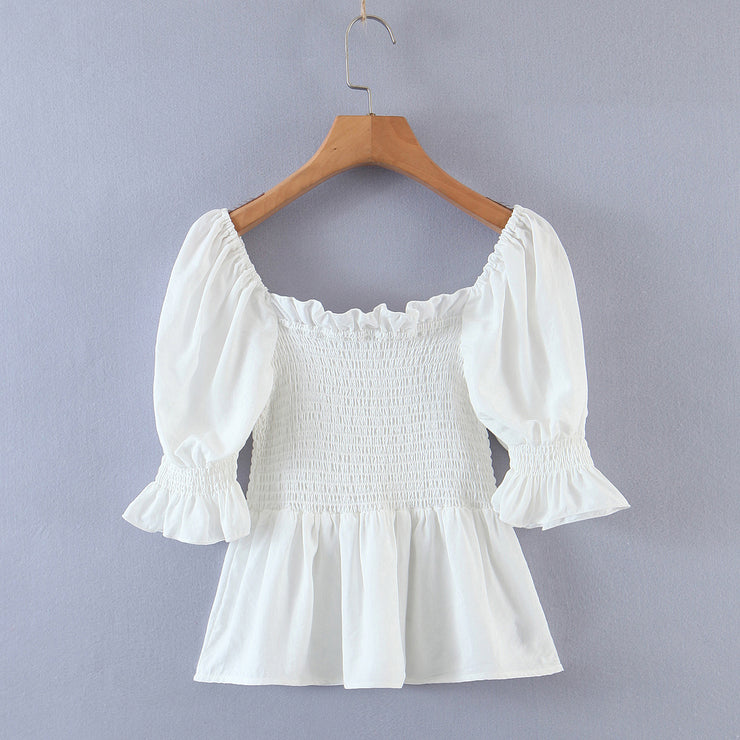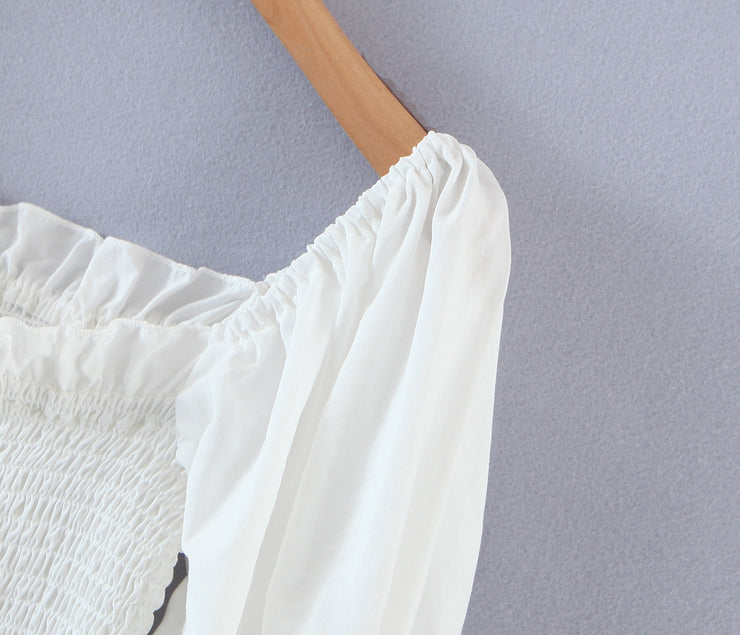 White plain cute and trendy smocked top you can easily wear with any outfit
